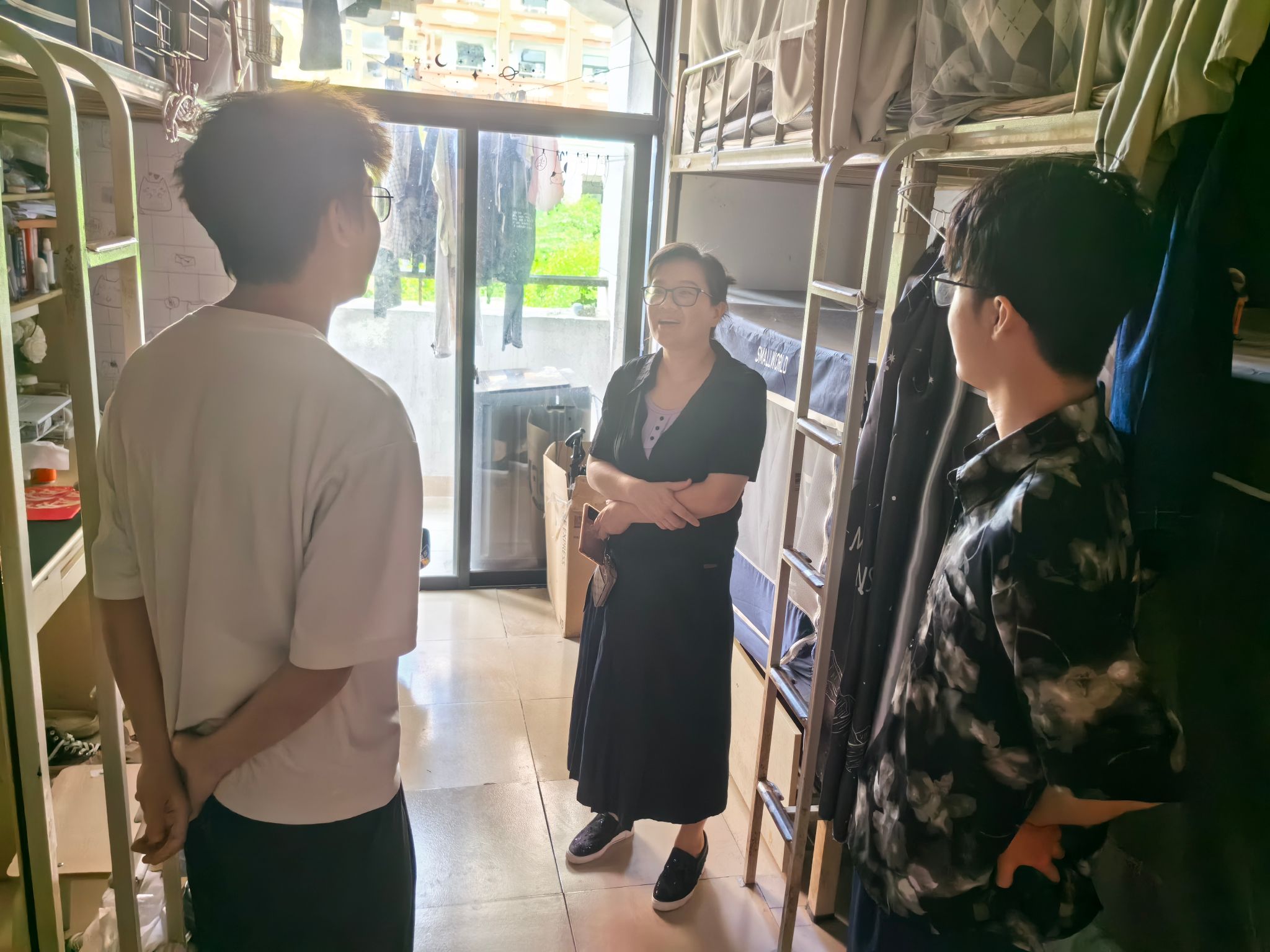 近日,我院学工队伍按照学校有关要求,深入学生社区开展暑期学校安全隐患自查自纠。学院党委副书记沈哲琼、班主任代表董振寿、值班辅导员到暑期留校学生宿舍等重点区域进行了全面检查,重点排查电器、电线、消防栓、灭火器等隐患点,对发现的问题立即整改,做到排查不漏设施、不留死角,排患务尽。 检查队伍还慰问鼓励留校备考学生,勉励他们在确保宿舍安全的同时,要“劳逸结合”,学会自我调节、互相关爱,保持身心健康,遇到无法解决的问题第一时间找辅导员老师。