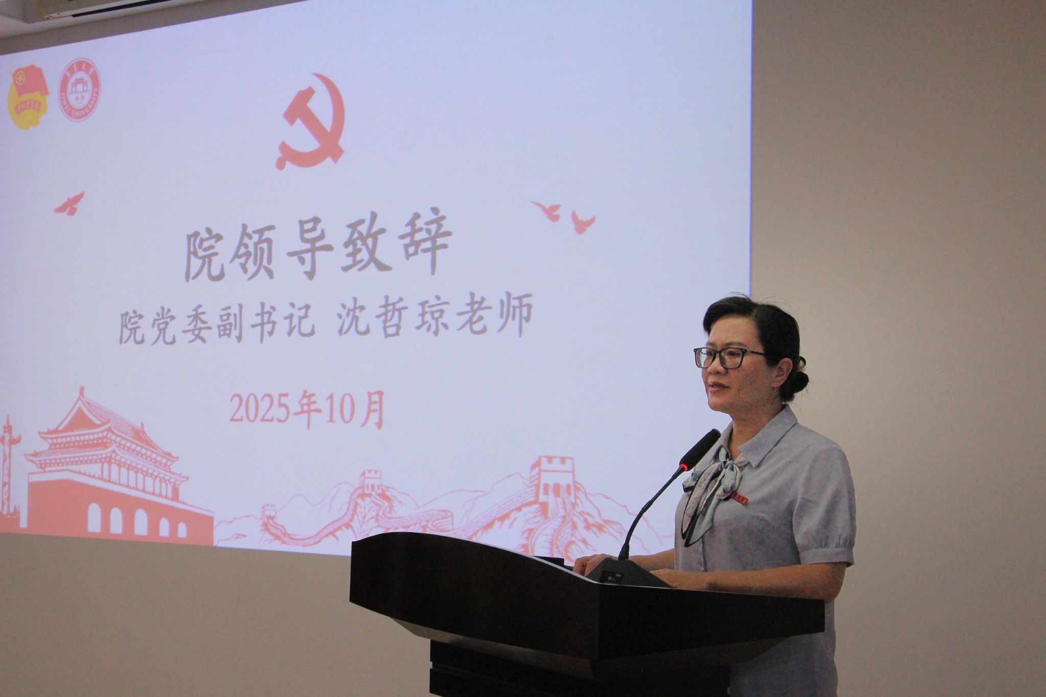 仪式开始,院党委副书记沈哲琼老师为第三期大骨班学员作学习贯彻党的二十届四中全会精神的领学动员,她强调:一是要高举“信仰之炬”,提升思想境界。学生干部要通过系统学习提升政治觉悟,深刻领悟“两个确立”、增强“四个意识”、坚定“四个自信”、做到“两个维护”,让个人理想与国家发展同频共振。二是要找准“奋斗方向”,锤炼过硬本领。学生干部要以建设者姿态主动破局,在集美大学学生诗词大会、法治文化节等学生工作实践中扎实打磨,不畏惧挑战、不回避难题。三是要强化“担当意识”,贡献青年力量。学生干部要以党的二十届四中全会精神为指引,主动对接学风建设、做好师生桥梁纽带、深入基层服务人民,在接续奋斗中践行青春责任。