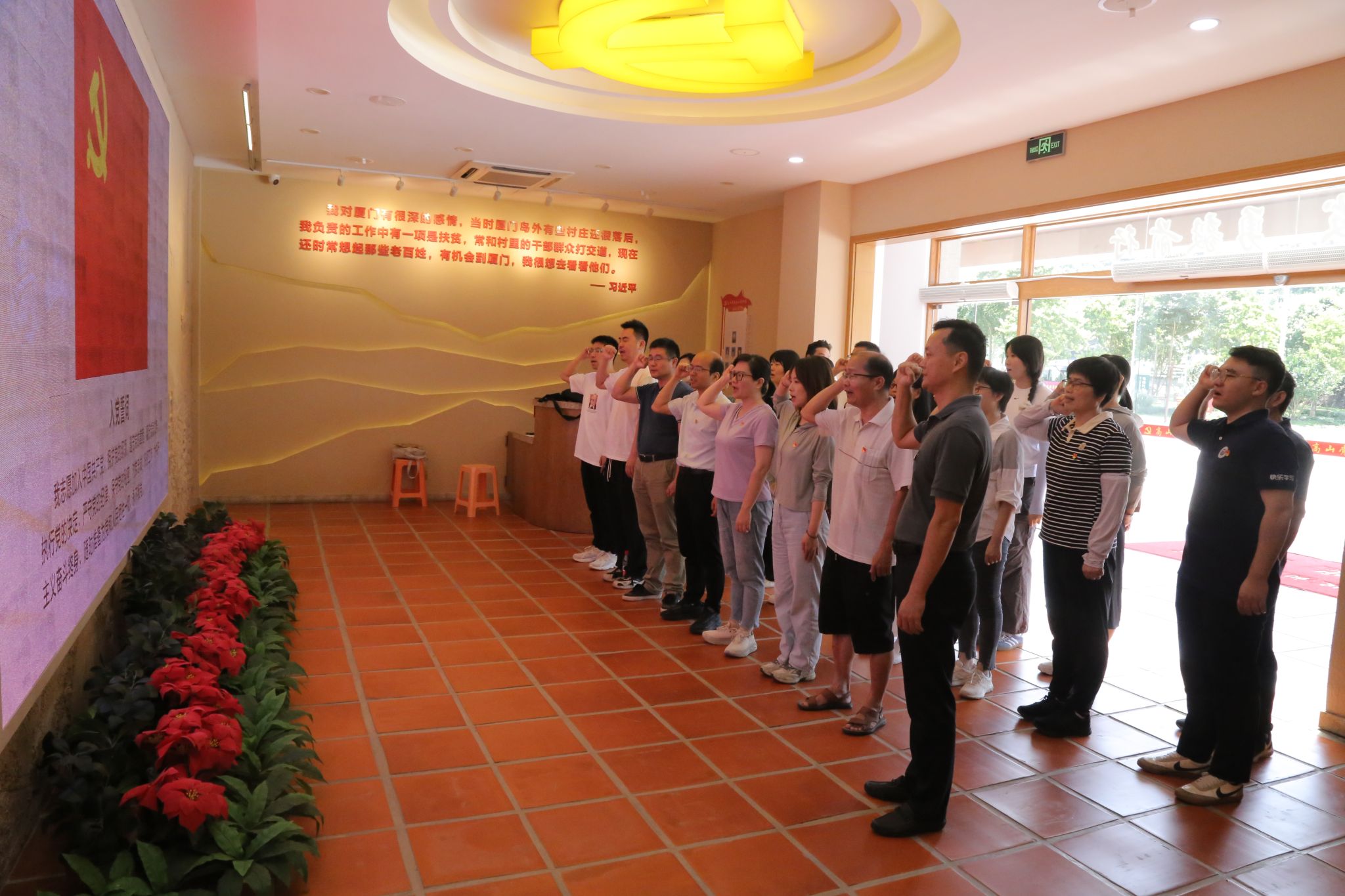在高山党校初心使命馆,全体党员聆听讲解员关于习近平总书记“两上高山”指导脱贫、谋划发展的理念与实践,学习习近平总书记对乡村发展和振兴的重要嘱托,重温党的初心和使命。学院党委书记陈志鸿结合军营村从偏僻穷山村到富美新农村的山乡蝶变,为教工党员讲授专题党课。他强调,要学习习近平总书记心系群众、造福一方的为民情怀,直面矛盾、攻坚克难的使命担当,坚持深入实际、调查研究的求是精神,以办好人民满意的教育的站位,扎实推进学院内涵建设。全体党员重温了入党誓词。大家还前往军营村老主任高泉国住处、军营村村委会等处实地参观学习。