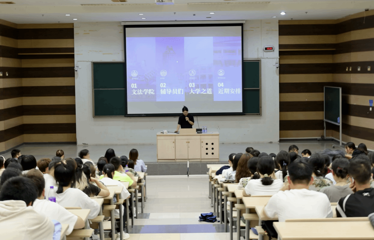 作为新生大学生活的重要引路人,学院全体辅导员老师依次发言,介绍了自己所带专业、所负责的学生工作模块,并寄语新生,期望同学们能够在大学中找到自己的热爱,快乐地生活,诗意地栖息。随后,新生辅导员向新生们介绍了学校和学院基本情况,对各项规章制度、安全防范、宿舍管理等问题进行了强调,鼓励新生同学们尽快适应大学生活,做好大学规划,充实度过四年时光,勇敢逐梦。