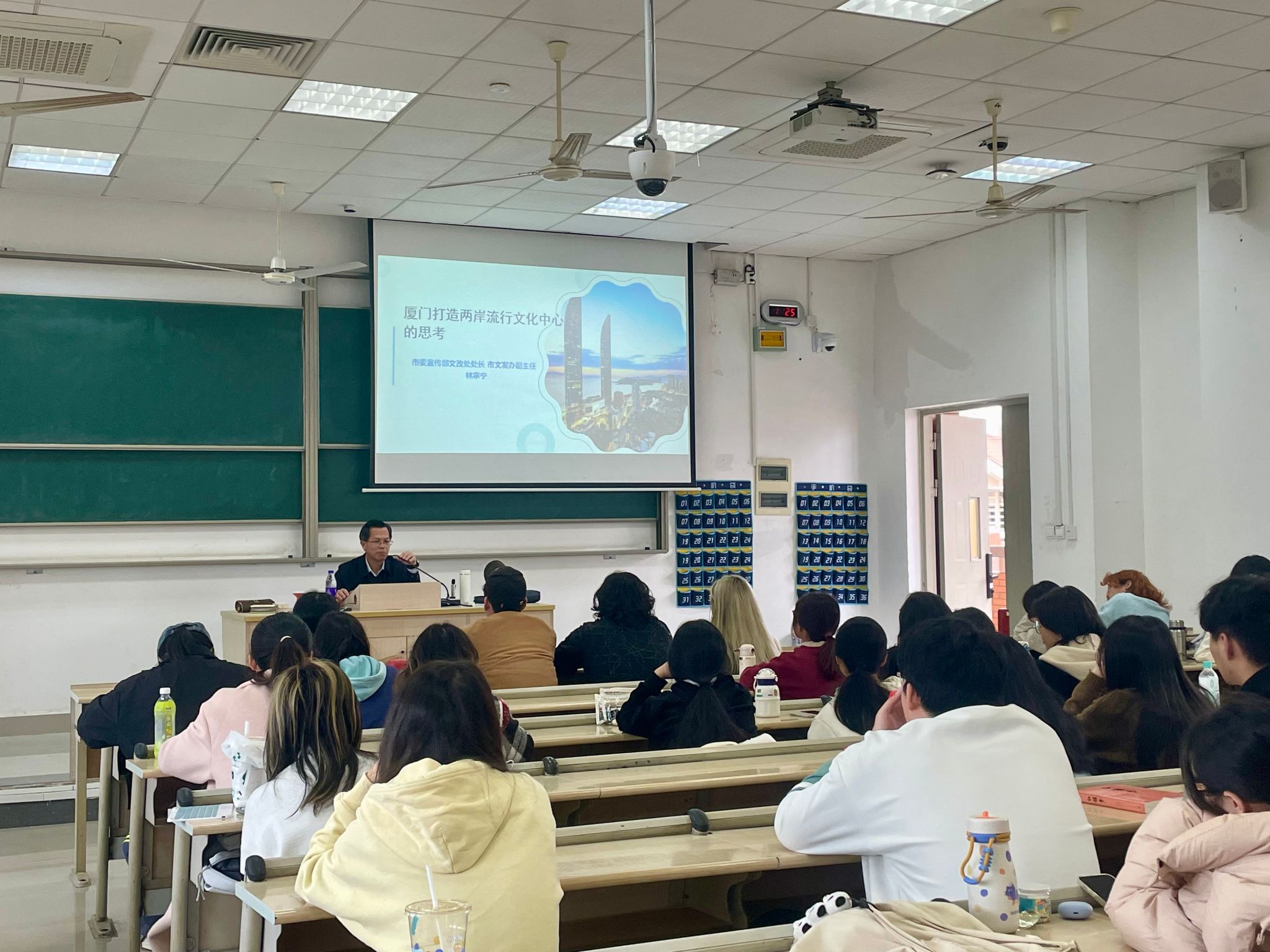 2025年2月20日,厦门市委宣传部文改处处长、市文发办副主任林宗宁受邀来到校园,为戏剧影视文学专业的学生们开设了《厦门打造两岸流行文化中心的思考》专题讲座,为同学们带来了前沿的产业洞察与规划思考。