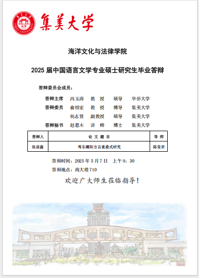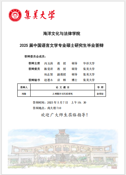 2025届硕士研究生毕业答辩公告(中国语言文学)(2025.05.07)