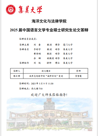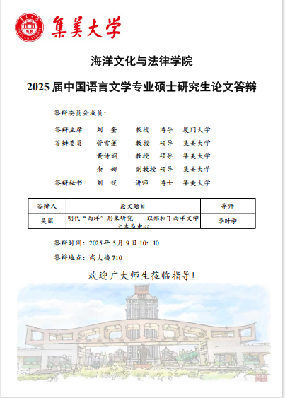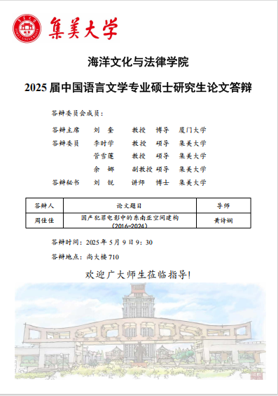 2025届硕士研究生毕业答辩公告(中国语言文学)(2025.05.09)
