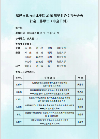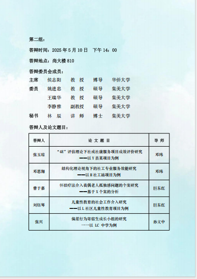 2025届硕士研究生毕业答辩公告(社会工作)(2025.05.10)