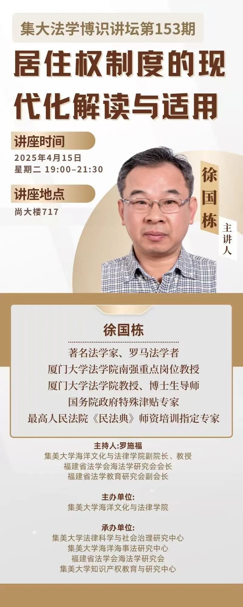 集大法学博识讲坛第153期:居住权制度的现代化解读与适用