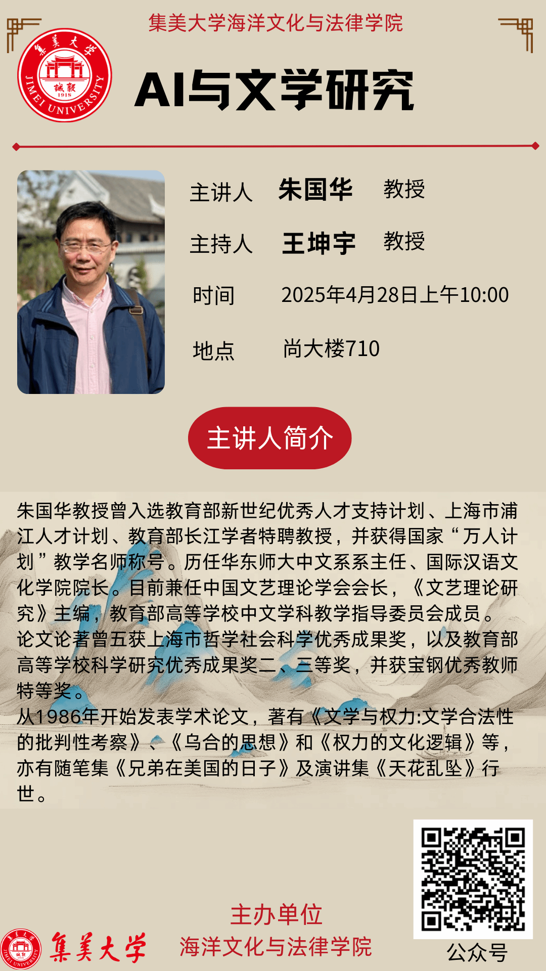 后人类文化前沿讲座——探索科技与人文的碰撞交融:朱国华教授谈“AI 与文学研究”
