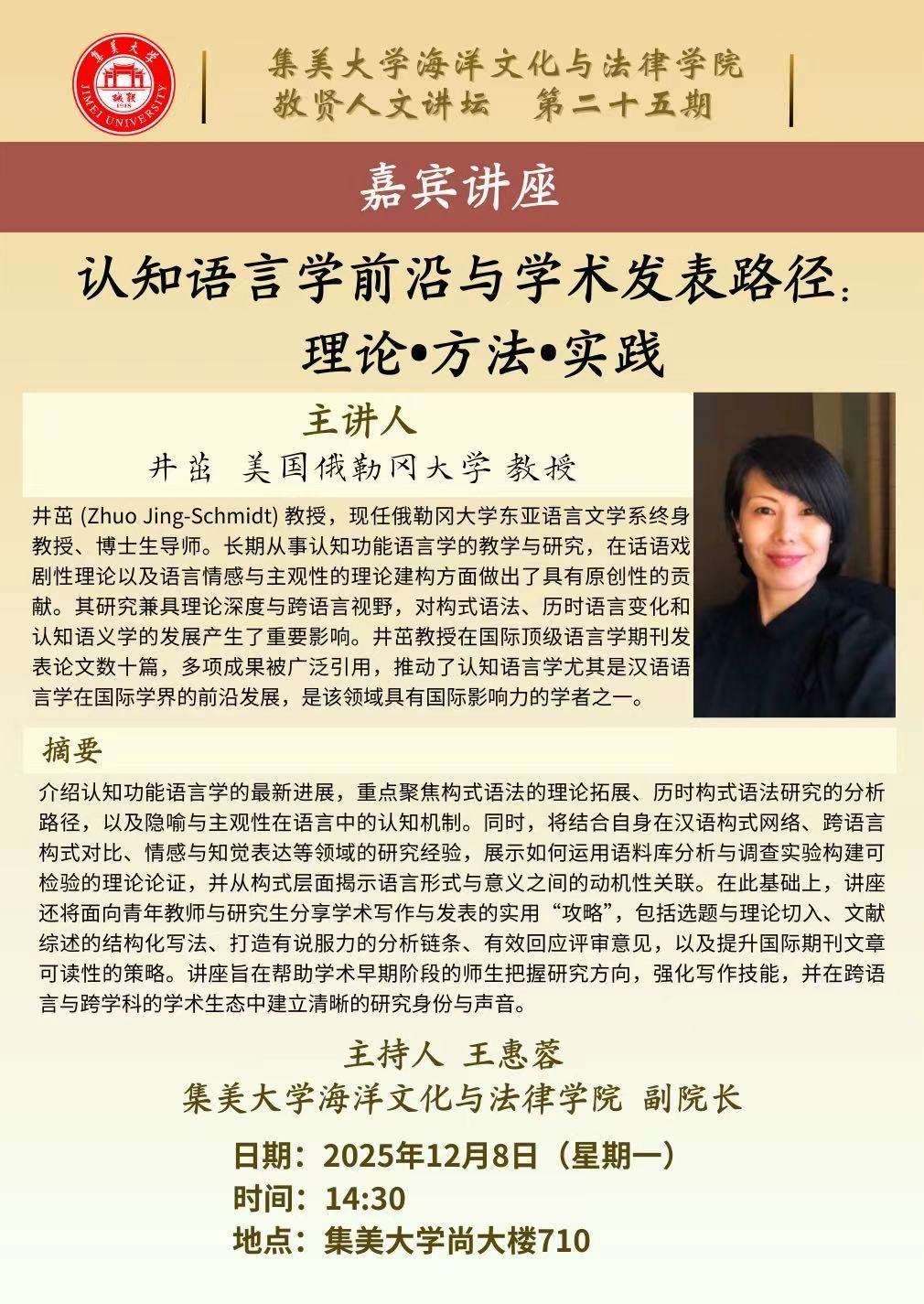 敬贤人文讲坛 第二十五期 | 井茁 认知语言学前沿与学术发表路径:理论•方法•实践