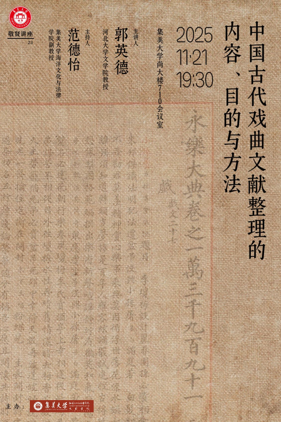 敬贤人文讲坛 第二十四期 | 郭英德:中国古代戏曲文献整理的内容、目的与方法